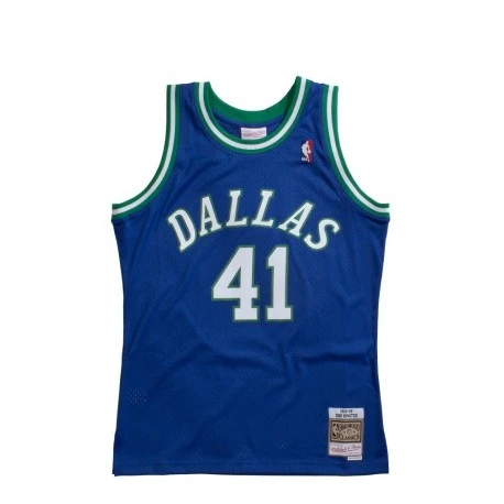 Le nom et le numĂ©ro de Dirk Nowitzki sont en sergĂ© sĂ©rigraphiĂ©s afin d’imiter avec prĂ©cision le look authentique du maillot de l’Ă©quipe NBA des Dallas Mavericks.
