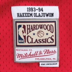 Le nom et le numĂ©ro de Hakeem Olajuwon sont en sergĂ© sĂ©rigraphiĂ©s afin d’imiter avec prĂ©cision le look authentique du maillot de l’Ă©quipe NBA des Houston Rockets en 1993-94.