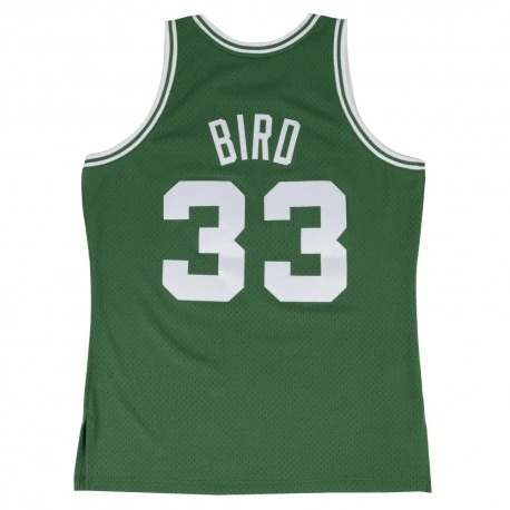 Le nom et le numĂ©ro de Larry Bird sont en sergĂ© sĂ©rigraphiĂ©s afin d’imiter avec prĂ©cision le look authentique du maillot de l’Ă©quipe NBA des Boston Celtics en 1985-86.