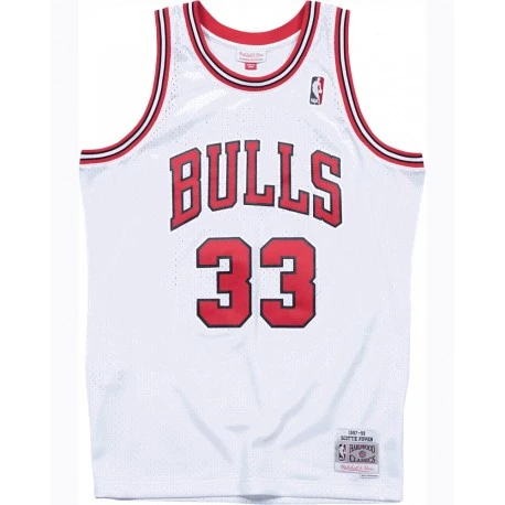 Le nom et le numĂ©ro de Scottie Pippen sont en sergĂ© sĂ©rigraphiĂ©s afin d’imiter avec prĂ©cision le look authentique du maillot de l’Ă©quipe NBA des Chicago Bulls.
