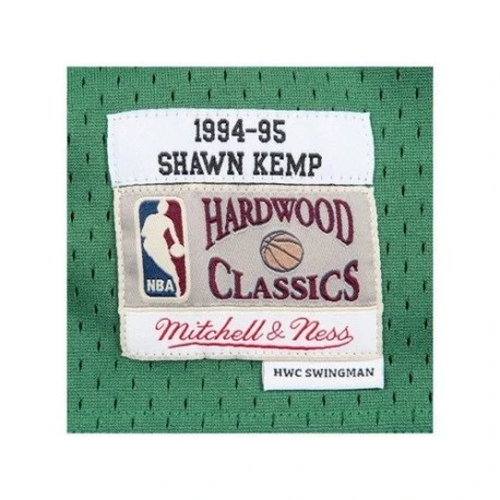 Le nom et le numĂ©ro de Shawn Kemp sont en sergĂ© sĂ©rigraphiĂ©s afin d’imiter avec prĂ©cision le look authentique du maillot de l’Ă©quipe NBA des Seattle SuperSonics en 1994-95.