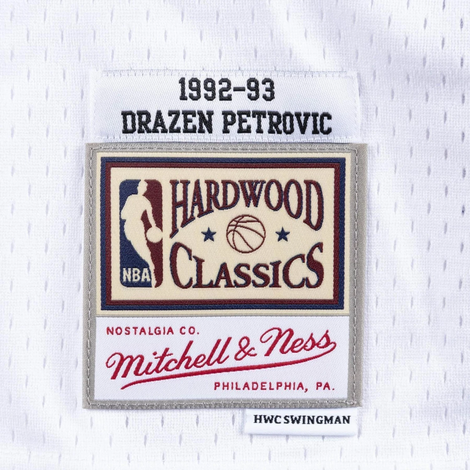 - Mitchell & Ness HWC Swingman a tissĂ© un jocktag et une Ă©tiquette avec le nom et l’annĂ©e du joueur en bas Ă gauche.