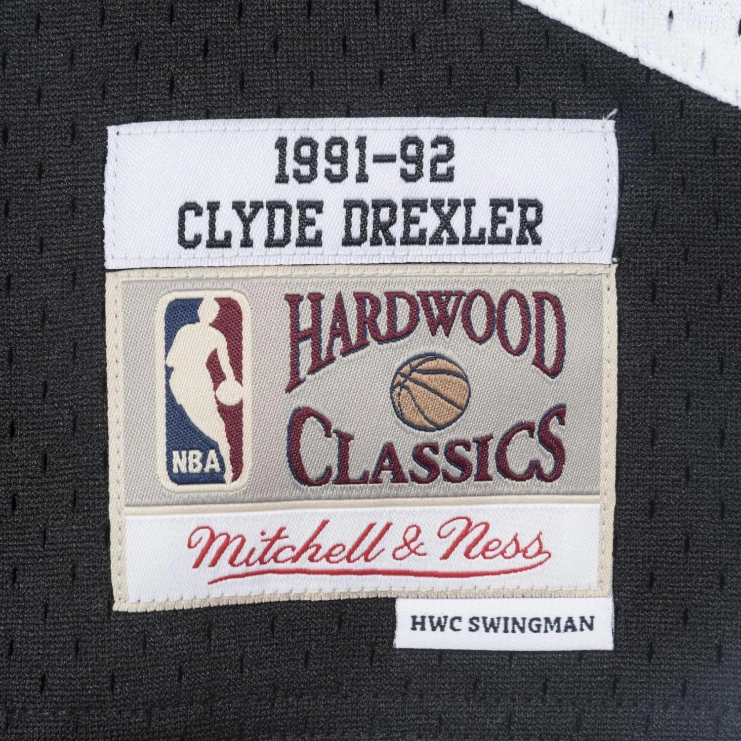 - Jocktag tissé Mitchell & Ness HWC Swingman et étiquette tissée nom du joueur/année ID en bas à gauche sur le devant.