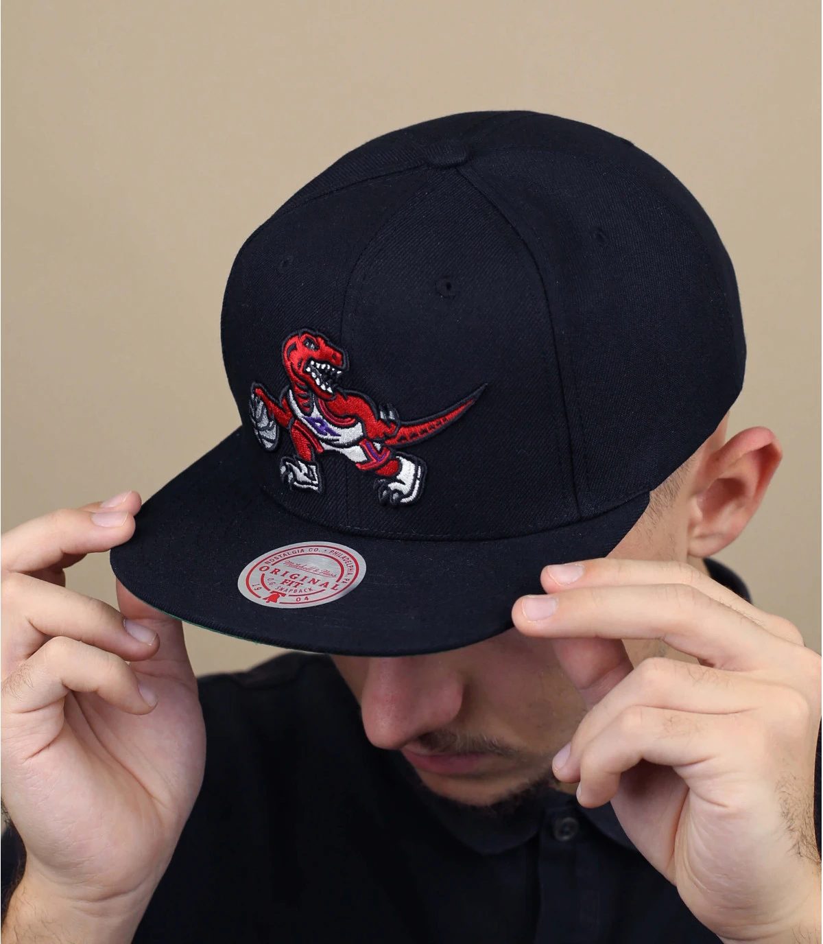 Portez une casquette fun comme cette casquette snapback noire qui montre la masquotte des Raptors, un dinosaure rouge en short qui fait du basket. C’est la mascotte de l’équipe de NBA canadienne en provenance de Toronto.