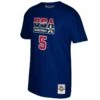 Maille 100% polyester. Bord cĂŽte lxl au col et aux manches. SĂ©rigraphie centrale sur le corps Ă l’avant et Ă l’arriĂšre. Coupe ajustĂ©e par l’Ă©quipe Mitchell & Ness : ce style est un peu plus ajustĂ© au corps et aux manches.