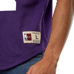 Maille 100% polyester. Bord cĂ´te lxl au col et aux manches. SĂ©rigraphie centrale sur le corps Ă l’avant et Ă l’arrière. Coupe ajustĂ©e par l’Ă©quipe Mitchell & Ness : ce style est un peu plus ajustĂ© au corps et aux manches.