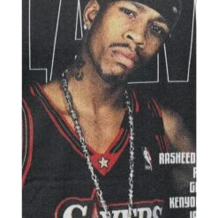 Maille 100% polyester. Bord cĂŽte lxl au col et aux manches. SĂ©rigraphie centrale sur le corps Ă l’avant et Ă l’arriĂšre. Coupe ajustĂ©e par l’Ă©quipe Mitchell & Ness : ce style est un peu plus ajustĂ© au corps et aux manches.
