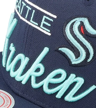 Seattle Kraken Retro Lock Up Navy Snapback – Mitchell & Ness